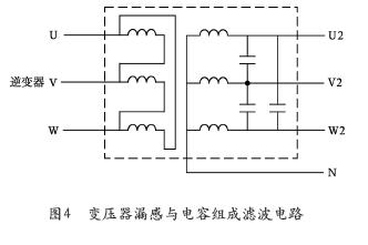 从图3能够看出这个滤波电路是串联电感和并联电容构成的。可是有变压器的UPS就不需求串联电感,它是运用变压器的漏磁电抗完结的,再外加电容构成滤波电路,如图4所示。变压器是两个绕组相互耦合实现变压的,由于两个绕组都有各自的不相互耦合的漏磁,这就构成串联在电路中的漏磁电抗,这恰恰是滤波的需求。该变压器的参数请求,有必要满意按照滤波请求的电抗数值,这就与通常的变压器不相同了。