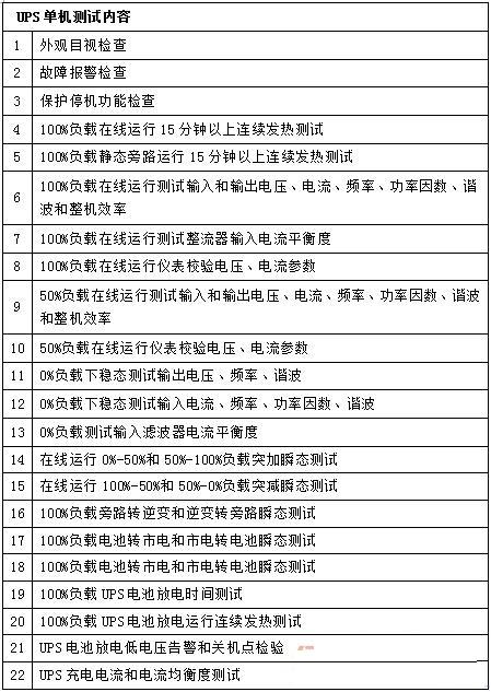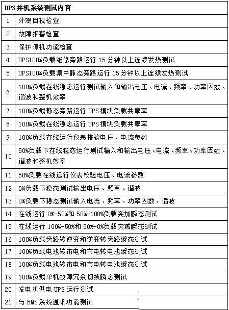 主要的单系统测试包括:高压系统、低压系统、不间断电源系统、发电机系统、冷却系统、冷冻系统、控制系统等的测试。