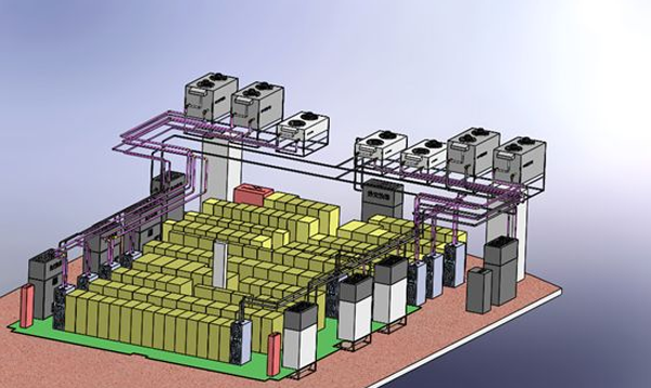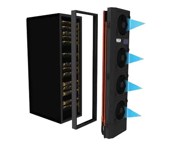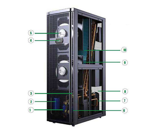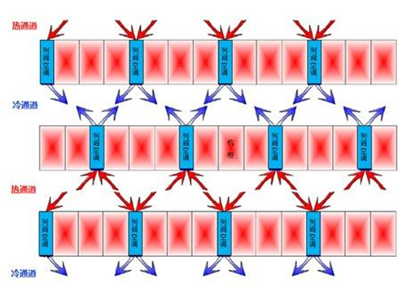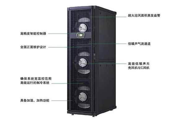 因为热源,空调的回风温度高,使得其能效比好,目前行间空调有风冷和冷冻水两种形式,风冷的压缩机多采用变容量的数码涡旋压缩机,风机采用EC风机,整机可以根据通道内的热负载调节制冷能力输出,行间空调用于封闭冷热通道的场合!