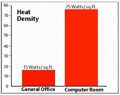 图2:计算机房内的热密度一般是办公环境的3-5 倍。