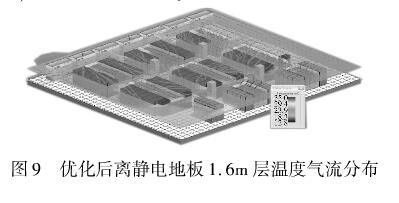 优化后进行模拟实验,观察温度与气流分布如图9所示,发现机房的温度分布得到了明显的改善,气流也趋于稳定。