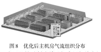优化设计后,用IBM专用CFD软件进行模拟,分析优化后其气流组织情况如图8所示,发现气流组织良好,气流混乱问题解决的效果良好,验证了方案的有效性。