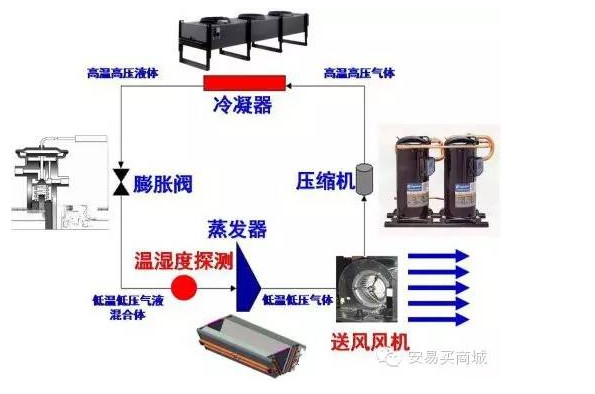 构成基本的制冷系统主要有四大部件:压缩机、蒸发器、冷凝器、膨胀阀。
