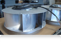 2、风机。风机为双宽度、双人口、前倾扇叶的离心扇,并经静态及动态的平衡测验及调校。风机低转速的规划使运转噪音减至最低,自对中垫轴承和双皮带驱动体系保证机组全年接连安稳运转。下图为海洛斯的风机。