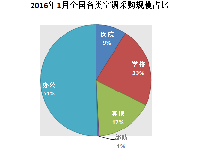2016年1月全国各类空调采购规模占比