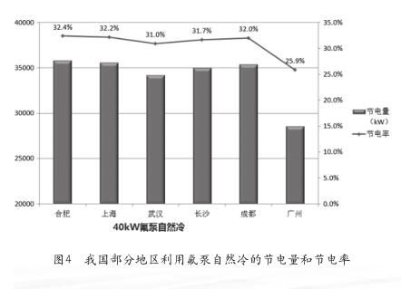 事实上,由于氟泵自然冷美女黄色网址超强的节能能力和极短的“尴尬时段”,使其应用范围已经不再限于北方,长江以南同样也取得了显著的节能经济性,甚至连广州,也有明显的节能效果。图4是我国部分地区利用氟泵自然冷的节电量和节电率。